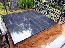В завершении устанавливаем цветник, наполняем его каменной крошкой. Покрываем надписи на граните акриловой краской, которая сделает текст заметным во время дождя. Перед сдачей объекта клиенту проводим на участке влажную уборку. На последних фотографиях видно, что благодаря наземному покрытию место захоронения преобразилось до неузнаваемости.