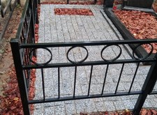 Ограду заменили на новую. Цветник собрали. Оставили зоны для цветов. Заказ сдавали осенью, поэтому решили не сажать цветы в зиму, просто закрыли землю мульчей. Надпись на памятнике освежили, портрет открасили. Очень долго они не потребуют к себе внимания по ремонту. На пол положили брусчатку. По периметру проварили металлическую полосу, с годами брусчатка не разъедется. Подробный фотоотчет ниже.